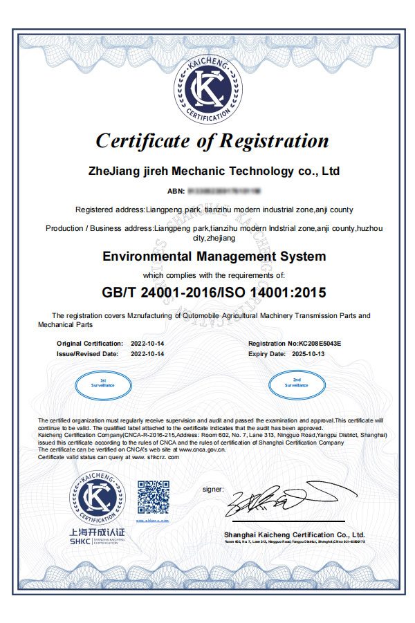 14001 Environmental System Certificate