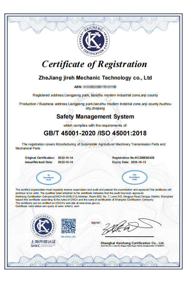 45001 Occupational Health System Certificate